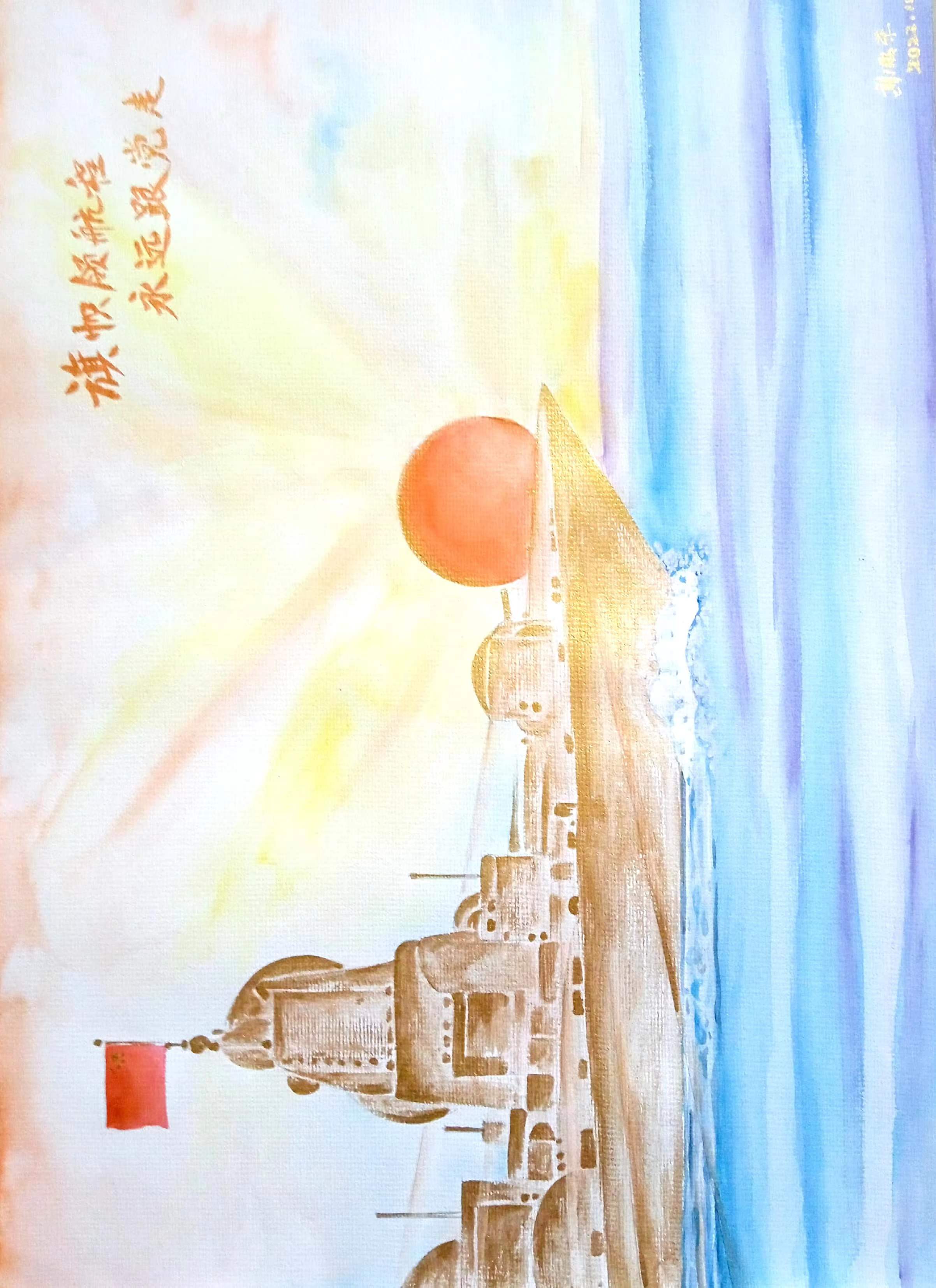 繪畫:旗幟領航程  永遠跟黨走